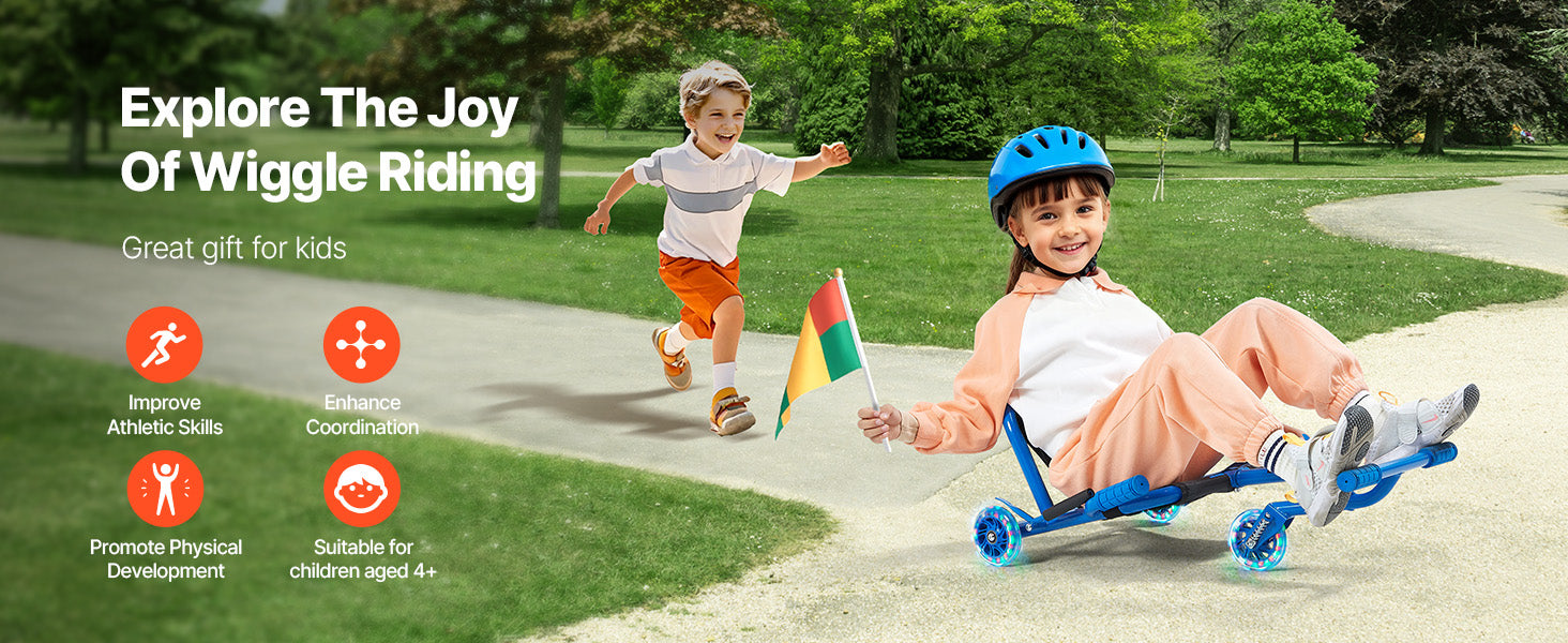 Kids simply wiggle their legs side-to-side to create forward motion. The flexible front wheel lets them steer easily while drifting and turning.